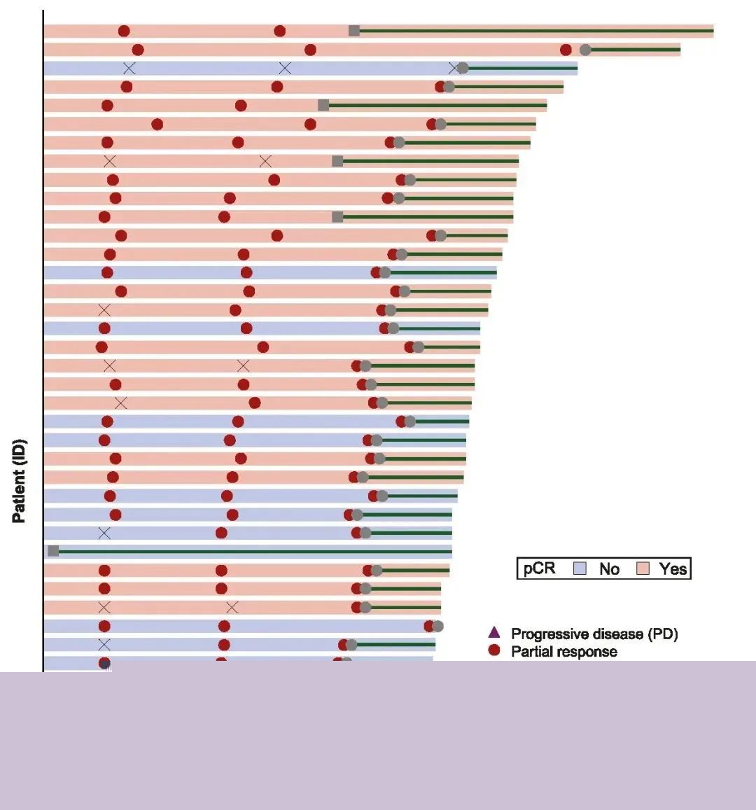 39例患者在新辅助治疗期间进行影像学评估,35例患者为部分缓解(PR),4例患者为疾病稳定(SD),ORR为89.7%(95%CI:74.8,96.7)。